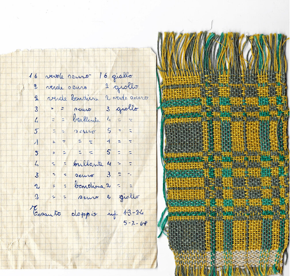 Luisa Mattiussi si dedica alla tessitura dalla fine degli anni Cinquanta, diventando in poco tempo protagonista di alto livello dell’artigianato tessile collaborando con importanti ditte del settore quali la Pellegrini di Campalto (Venezia) e lavorando nel suo laboratorio a Magnano in Riviera.